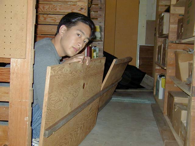 This is a good place to put your strobe light or fog machine. This will add to the disorientation and enhance the effect of the rickety floor. You may be able to loosen the nails in the center support so that they make a creaking sound as guests walk across. As with the Walking Through Cobwebs effect, you will most likely want to save adding this effect until last. You don't want to have to walk across a wobbly board whenever you need to get somewhere in your haunt. Back |